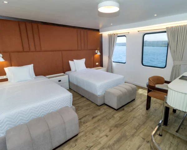 Experience the ‘Enchanted Islands’ in our new custom-built yacht, the Grand Queen Beatriz. Our boutique expedition boat came into service on 2018, and was fully renewed on November 2023. With a stylish modern design, ensuite bathrooms, outward-facing windows in all cabins (and private balconies in some), and a jacuzzi on the sundeck.
